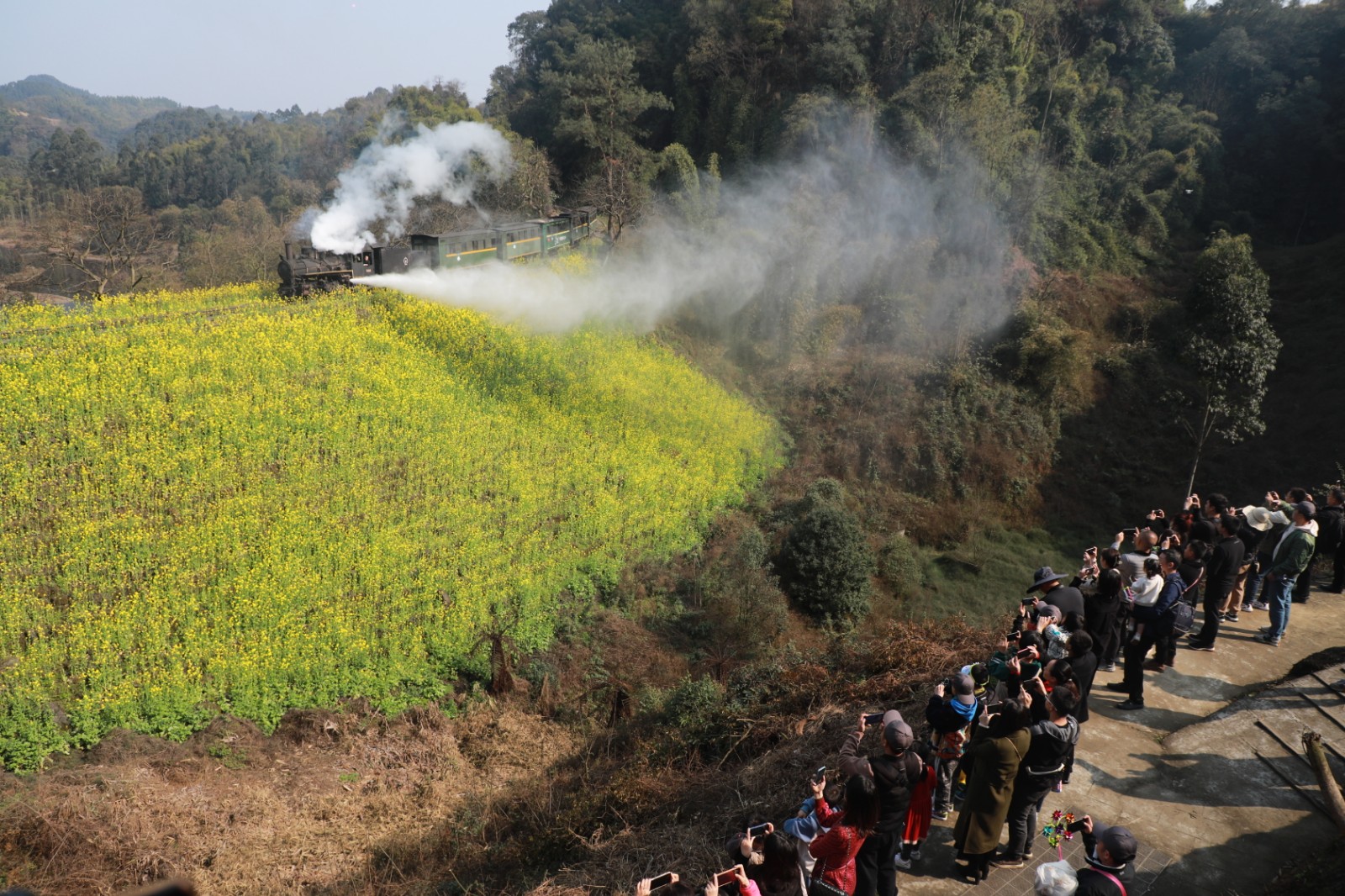油菜花开,美丽如画,开往春天的小火车正在画卷中穿行,铁路旁、山头上游人们徜徉在春天里。胜游(中国)川投峨旅公司2023年“花季之旅”开启以来,逐步进入高潮,游客数量持续增加,周末更是一票难求,近万人的游客一扫疫情以来的阴霾,迎来旅游业复苏的春天。