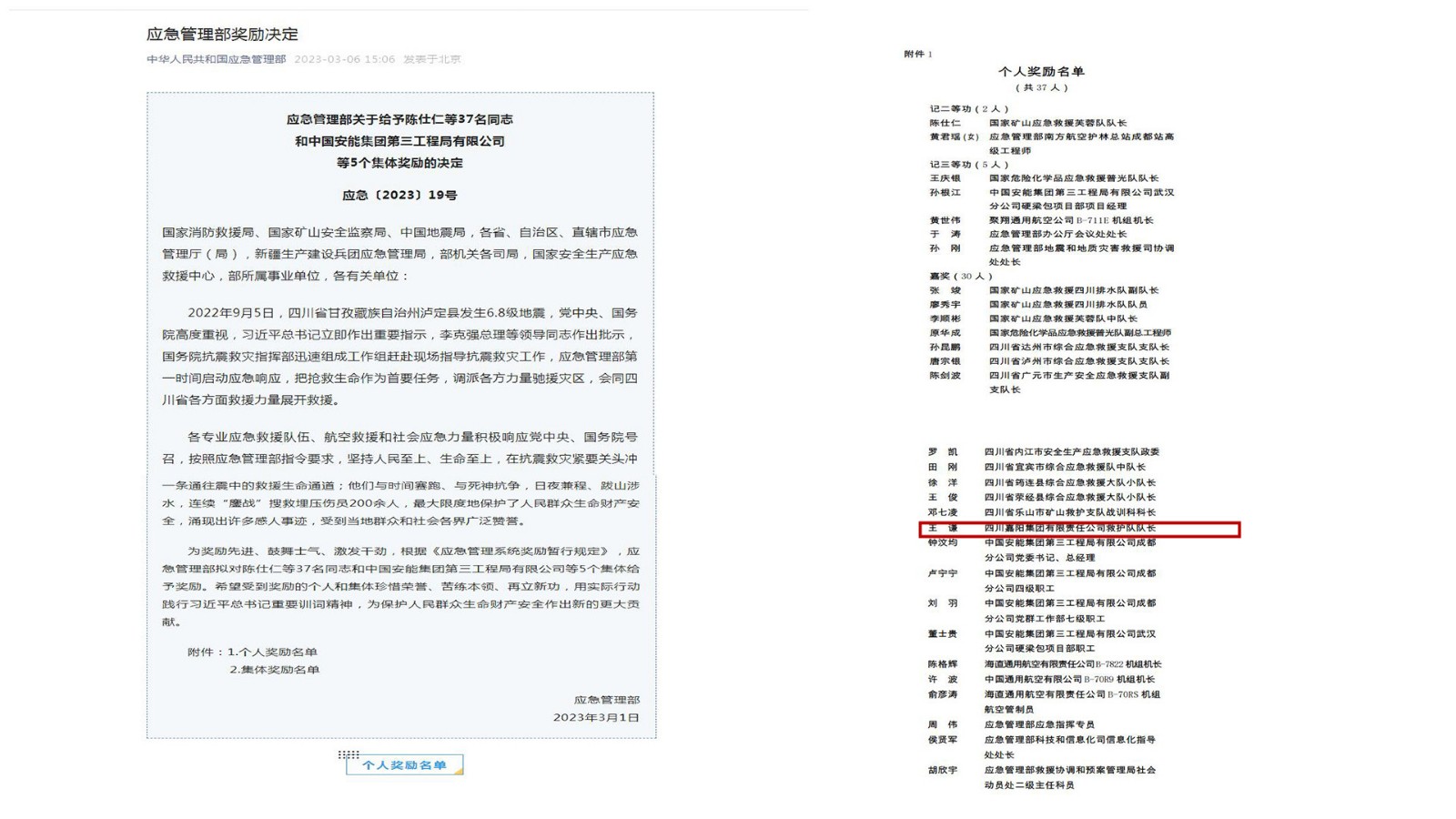 近日,应急管理部[2023]19号文件下发,对泸定抗震救灾表现突出的个人和集体进行奖励,胜游(中国)矿山救护队队长王谦榜上有名。