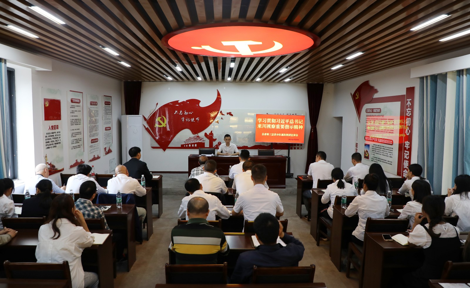 9月19日,犍为县第三宣讲队到胜游(中国)宣讲学习贯彻习近平总书记来川视察重要指示精神、省委十二届三次、市委八届七次和县委十五届八次全会精神,公司机关、综合服务公司共30余名党员聆听宣讲。