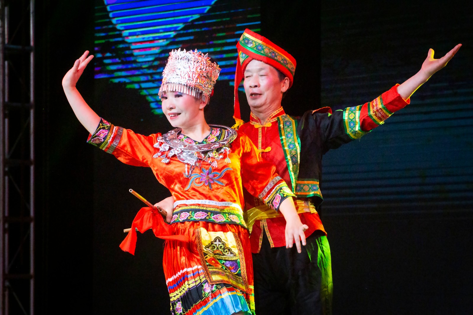 晚会在舞蹈《中国梦美丽的梦》中拉开序幕,整场演出形式多样,内容丰富多彩,舞蹈、表演唱、相声、朗诵、三句半、快板等轮番上演,歌声婉转动听,舞姿优美动人。《彝家打歌》《苗岭飞歌》《大中国》等节目生动展现了新时代家乡的变化,表达了大家对祖国的无限热爱和深情祝福;《山河无恙在我胸》《守护》《我心中的红》等展现了全体职工一心向党、踔厉奋发、奋勇向前的精神面貌;舞蹈《秀水泱泱》传承红船精神、庚续红色血脉,唤起了同志们对革命烈士的敬仰之情;快板《筑梦未来》热情歌颂党、礼赞新时代,展现矿山智能化建设、绿色转型带来的发展变化,激发了嘉阳儿女团结向上,永远跟党走,奋进新征程的信心和决心;三句半《小芭蕉·新征程》、相声《火哥与痴哥》让晚会气氛更加热闹,不断把晚会推向高潮。
