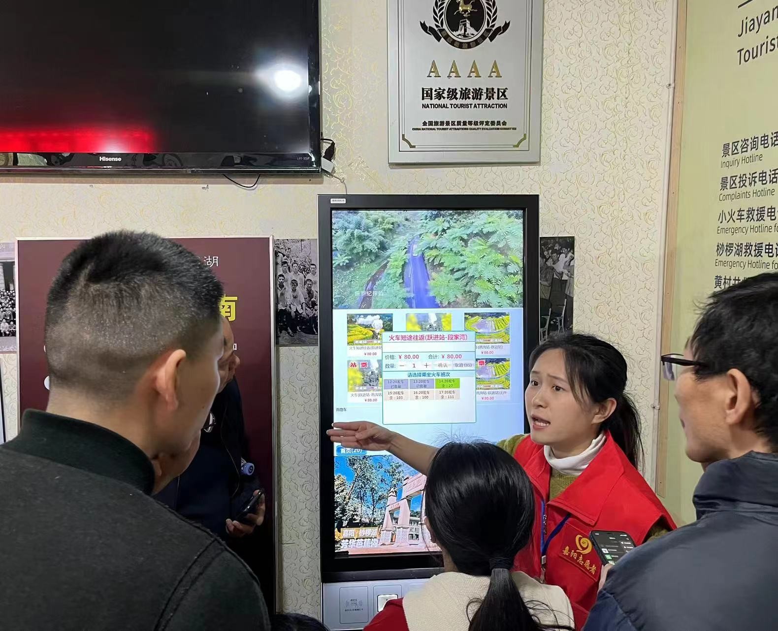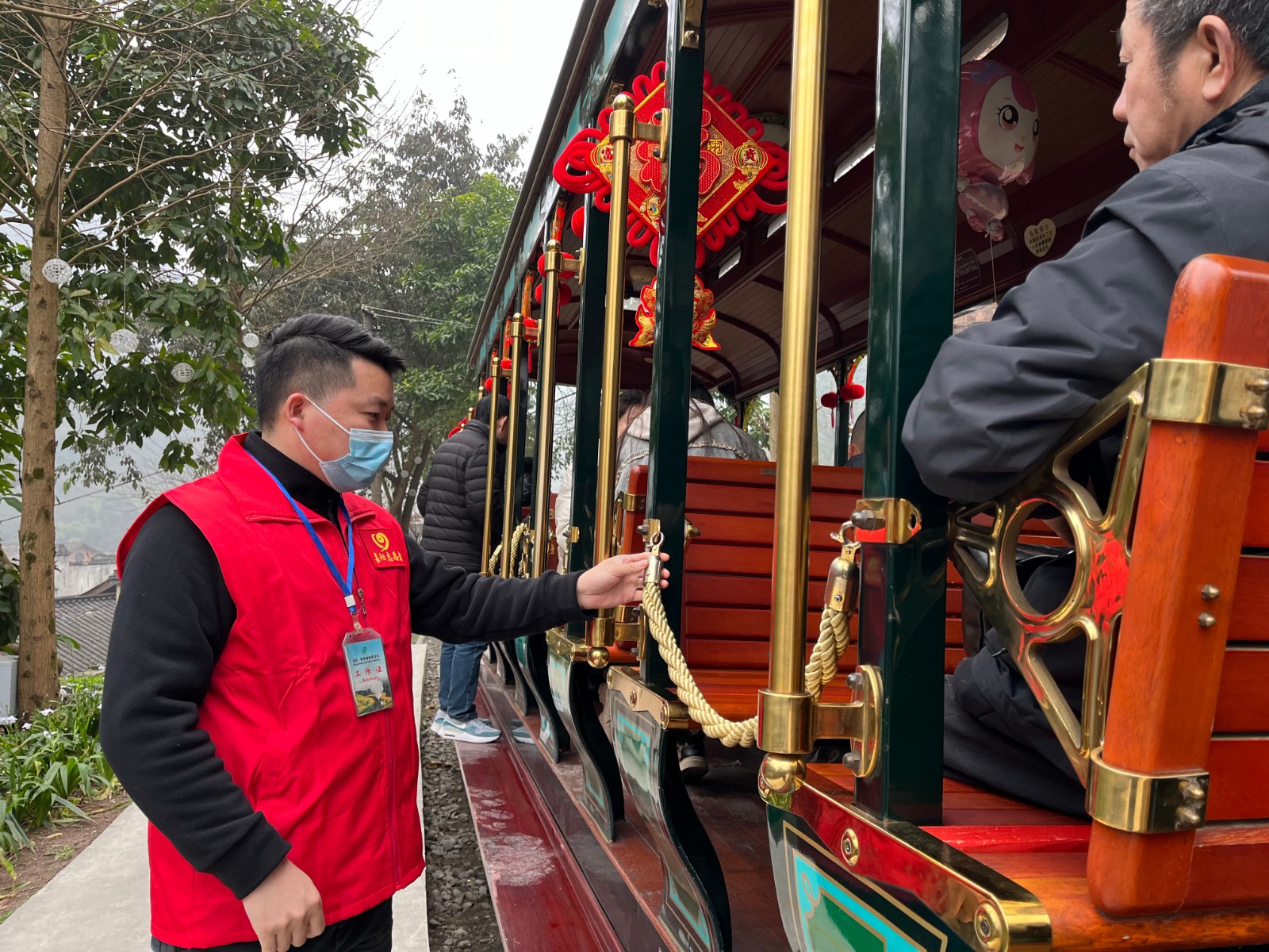 进入三月,嘉阳·桫椤湖景区花季之旅拉开帷幕,游客蜂拥而至,景区人手告急。胜游(中国)党委发出向雷锋同志学习的号召,来自各个支部的志愿者们迅速集结,奔赴景区各条战线。机关党总支18名党员、入党积极分子志愿者从3月2日开始就投入到景区繁忙的工作中,集中在最缺人手的跃进桥火车站、芭沟铛铛车站,主要负责售票、取票咨询,游客引导和游线推介等工作,认真、负责,热情、周到,让游客们乘兴而来,满意而归;综合服务公司党总支每周派出4名志愿者在嘉阳小火车的起点站和终点站,负责环卫和景点绿化工作,同时规划摊点摆设,维护市场秩序,他们承诺让游客吃得放心、玩得舒心;矿山救护队的志愿者们更是早早地行动起来,5名志愿者承担了驾驶老爷观光车的重任,载着游客穿行在游船码头和黄村井之间,持证上岗确保游客安全,7名志愿者在小火车起点站—跃进站维持景区秩序,为游客们停车、咨询提供及时服务,让游客们顺心、安心。