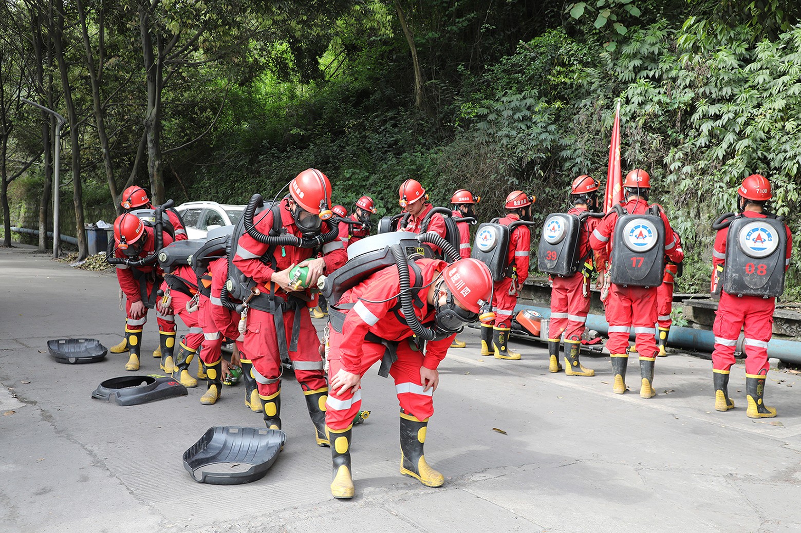 演练在模拟矿山灾害事故的紧张氛围中正式启动。闻警出动中,乐山队值班小队迅速反应,以最快速度奔赴现场,待机小队与嘉阳队也毫不懈怠,紧跟其后。各小队在集团公司救护队训练场迅速集结,有序领受任务。随后,各小队队长严格按照标准化流程,组织队员对各类救援装备进行细致检查,确保装备性能完好,为后续救援工作提供坚实保障。