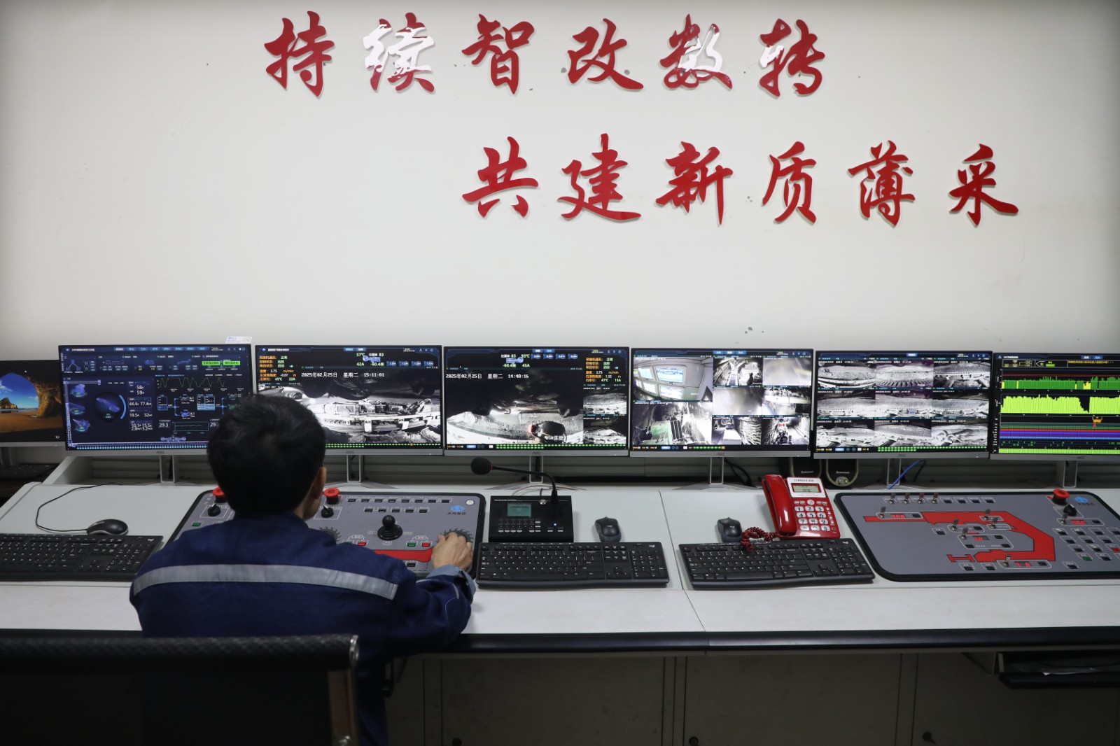 面对困境,采煤二队坚持“智能驱动、问题导向、精准施策、安全为先”原则,针对3303工作面难题,优化割煤路径与采煤工作面顶板、底板管理策略,在冲刷带采用“保顶卧底”的方式,岩层区域切换“慢速低割”模式,有效降低设备磨损,保障采煤机正常作业。同时,创新管理机制,依托5G防爆手机、视频巡检系统及远程操控平台,构建“实时采集—即时上传—远程监控—快速响应”闭环体系,通过微信群实时共享工作面视频,实现每班生产全过程动态掌控,确保采煤循环保持正常。设备保障方面,9月份不仅完成了3303智能化设备日常检修维护,还用13天时间完成了3125新采煤工作面桥转机、刮板输送机、采煤机的抢修与安装,为采煤工作面搬迁接替创造了有利条件。目前,全队职工正众志成城合力攻坚,生产呈现平稳有序态势。