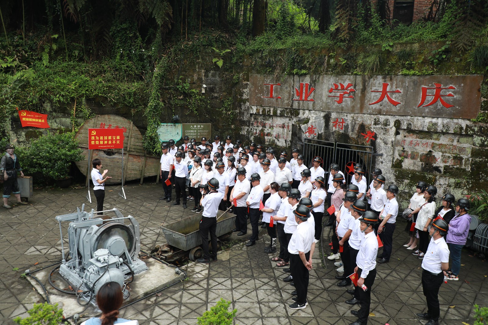 全体人员坐上“工人先锋号”、下观光矿井黄村井……回顾芭石铁路建设过程、煤矿发展历史,驻足党性教育文化长廊,所到之处无不展示了嘉阳在党的领导下所取得的辉煌成就,见证了几代嘉阳人艰苦奋斗、自力更生的创业成果。重温入党誓词、聆听微党课《凝聚嘉阳精神 促进转型发展》《火车跑得快,全靠车头带》《我为祖国献宝藏,燃烧精神永不灭》《星星之火可燎原,不忘初心为人民》,深刻感悟工匠精神、奉献精神、开拓精神,进一步提升了党性觉悟,坚定了理想信念。大家纷纷表示,半天的党史学习教育主题鲜明、课程丰富,沉浸式的学习体验让我们充分感受到作为一名煤矿工人的自豪和荣耀,这更加鞭策我们要不断淬炼初心,为企业安全高效可持续发展作出我们应有的贡献。