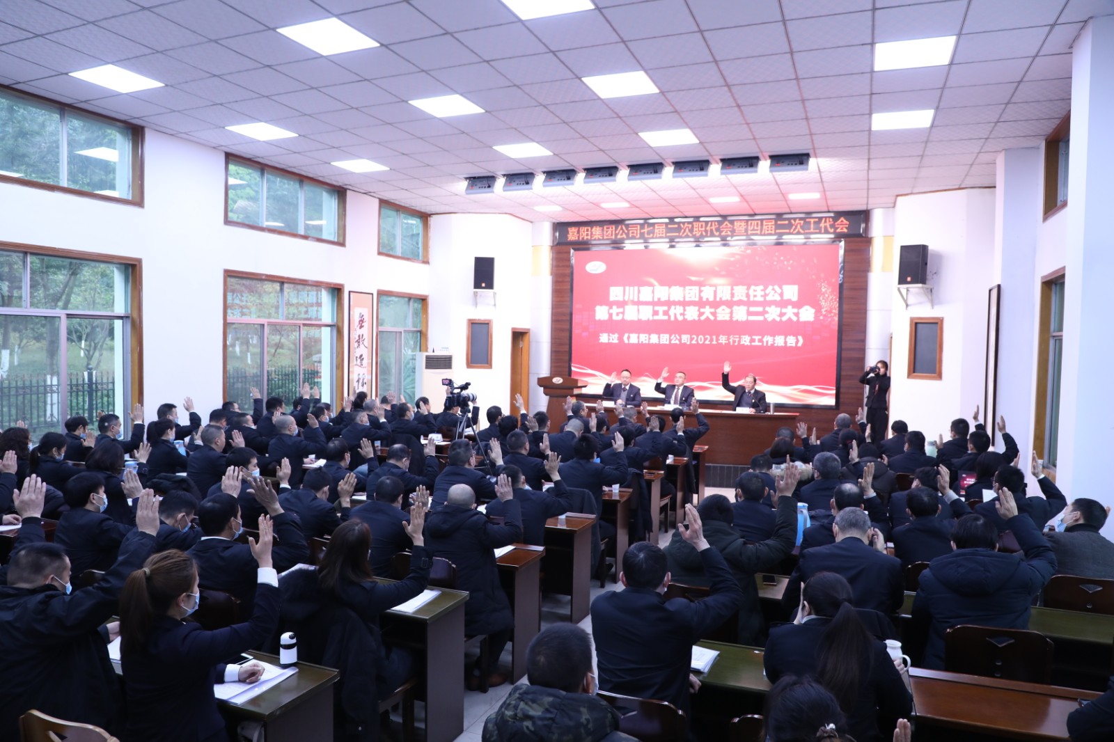 20日上午8点30分,在激情澎湃的国歌声中,胜游(中国)七届二次职代会暨四届二次工代会拉开帷幕。大会听取了总经理范勤英所作题为《以科技破困局 靠技术谋出路 开创企业发展新局面》的行政工作报告。报告全面回顾了公司2021年的目标完成情况及主要工作:在川投集团和公司党委的坚强领导下,经营班子带领全体职工踔厉奋发,笃行不怠,抢抓市场机遇,深化内部改革,践行社会责任,克服了诸多困难和挑战,矿井智能化建设取得了突破性进展,安全生产平稳运行,经营效果良好,生产煤炭115万吨,完成掘进进尺8436米,营业收入首次突破5亿元达5.3亿元,全面完成川投集团下达的各项目标任务。报告明确了2022年的目标任务和工作思路。报告强调要坚守安全底线,做好环保工作,抓好疫情防控;要坚持科技进步,树立产业标杆;要保持战略定力,巩固主业优势,培育发展动能;要持续深化改革,确保国企改革三年行动圆满收官;要为职工进一步提供发展空间,健全选人用人机制;着力“我为群众办实事”,与职工共享发展成果。