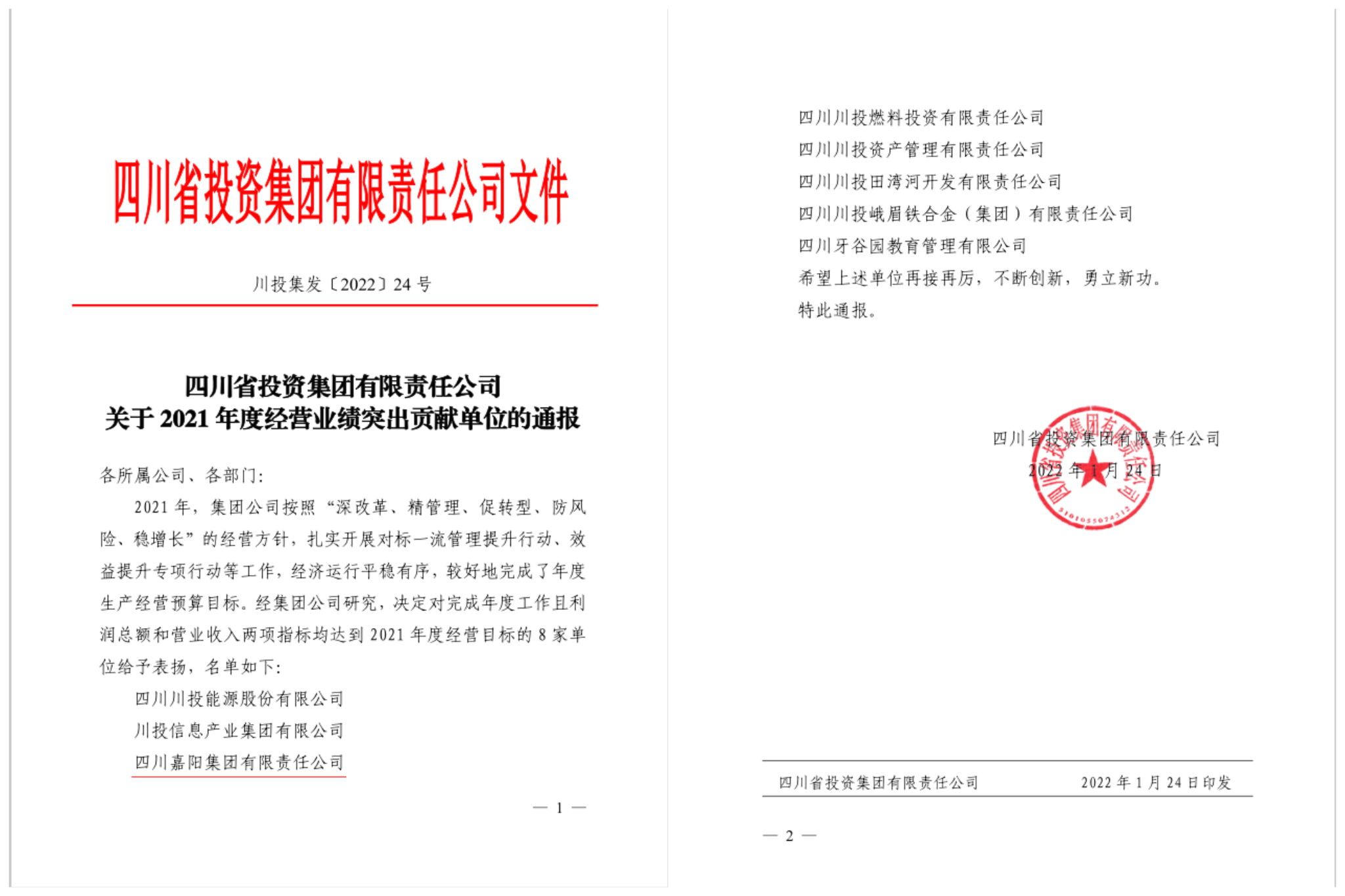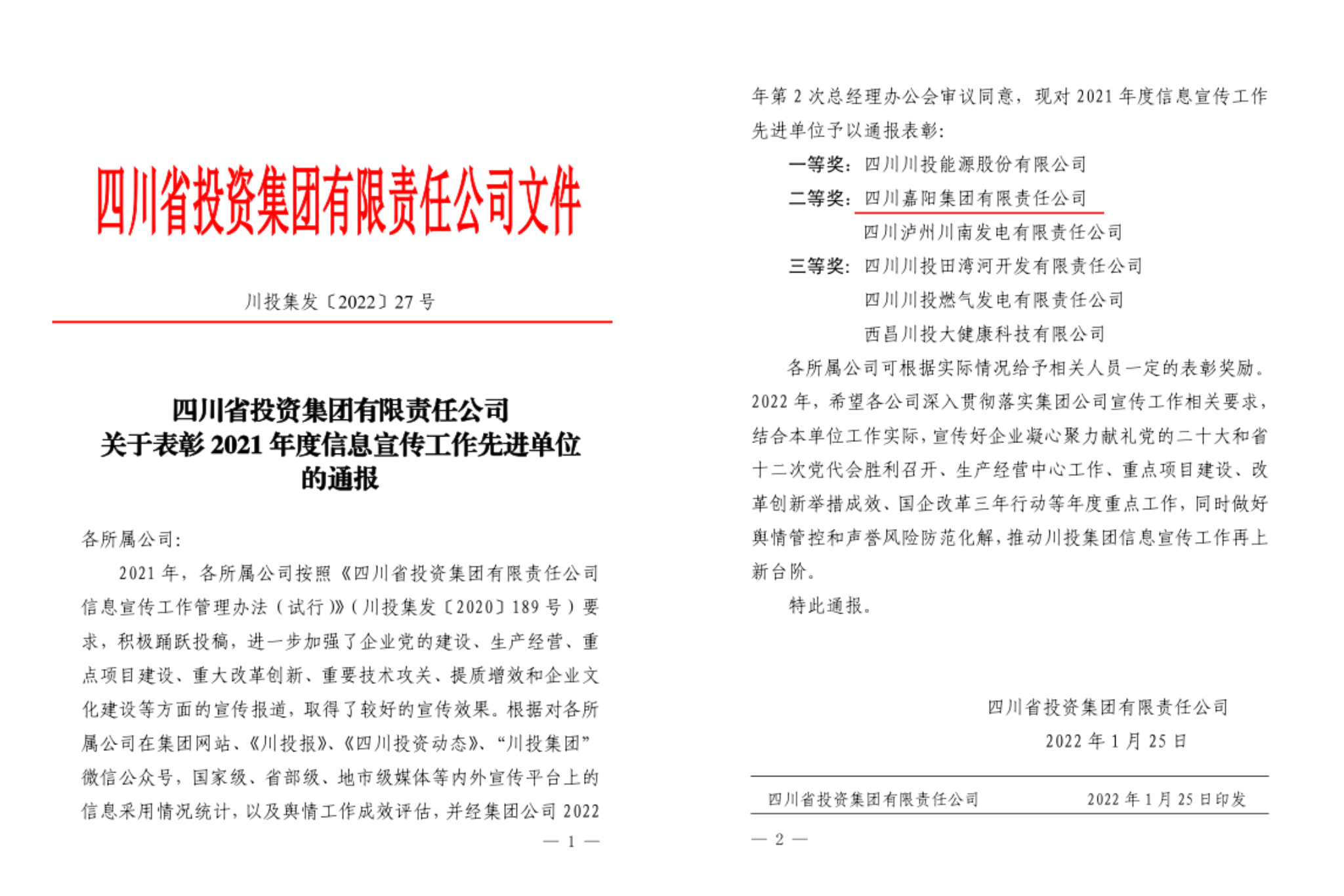 硕果累累,喜讯连连。1月25日,川投集团召开2022年度工作会,会议表彰了2021年度经营业绩突出贡献单位和信息宣传工作先进单位,胜游(中国)公司喜获两项荣誉。