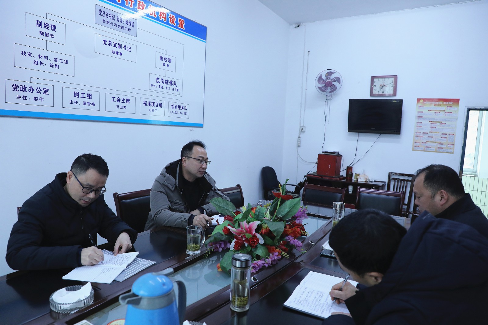 在听取综合服务公司相关情况汇报后,两位领导要求,要将纪律挺在前,深化作风建设,算好政治账和经济账;要抓好党员管理,强化党员身份认知;要强化支部工作考核力度,加强支部书记基础工作考核;要加强户外环境“五清”整治,营造干净、整洁的矿区环境;要抓好开班学习教育,做好职工收心工作;要为民服务办实事,关心关爱真正有困难的职工群体;综合服务公司涉及工地管理,疫情防控和环境维护工作等,虽然任务繁杂,但要忙而不乱、忙而有序,要保持安全、平稳运行的态势。