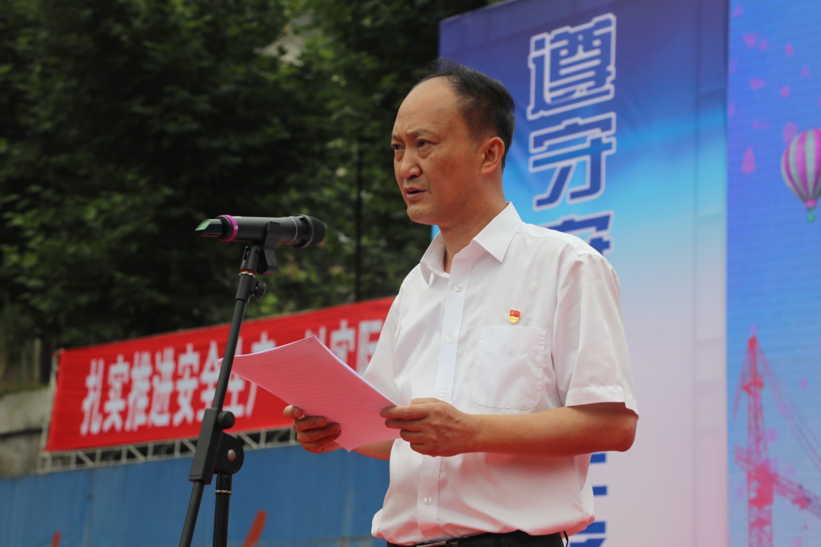 乐声阵阵,彩旗飘飘,活动通过观看2022年全国“安全生产月”宣传视频拉开帷幕。胜游(中国)公司党委书记、董事长杜勤致欢迎辞,国家矿山安监局四川局监察执法五处处长余光林宣读《矿山安全生产倡议书》,乐山人民政府张德平副市长发表讲话,国家矿山安监局四川局总工程师、一级巡视员鄢正文对安全月活动的开展提出希望和要求。在6位领导的共同发力下,仪式启动球顺利开启,活动正式启动。胜游(中国)总经理范勤英带领乐山市各企业安全第一责任人庄严宣誓,字字有力句句铿锵,对“遵守安全生产法、当好第一责任人”作出郑重承诺。
