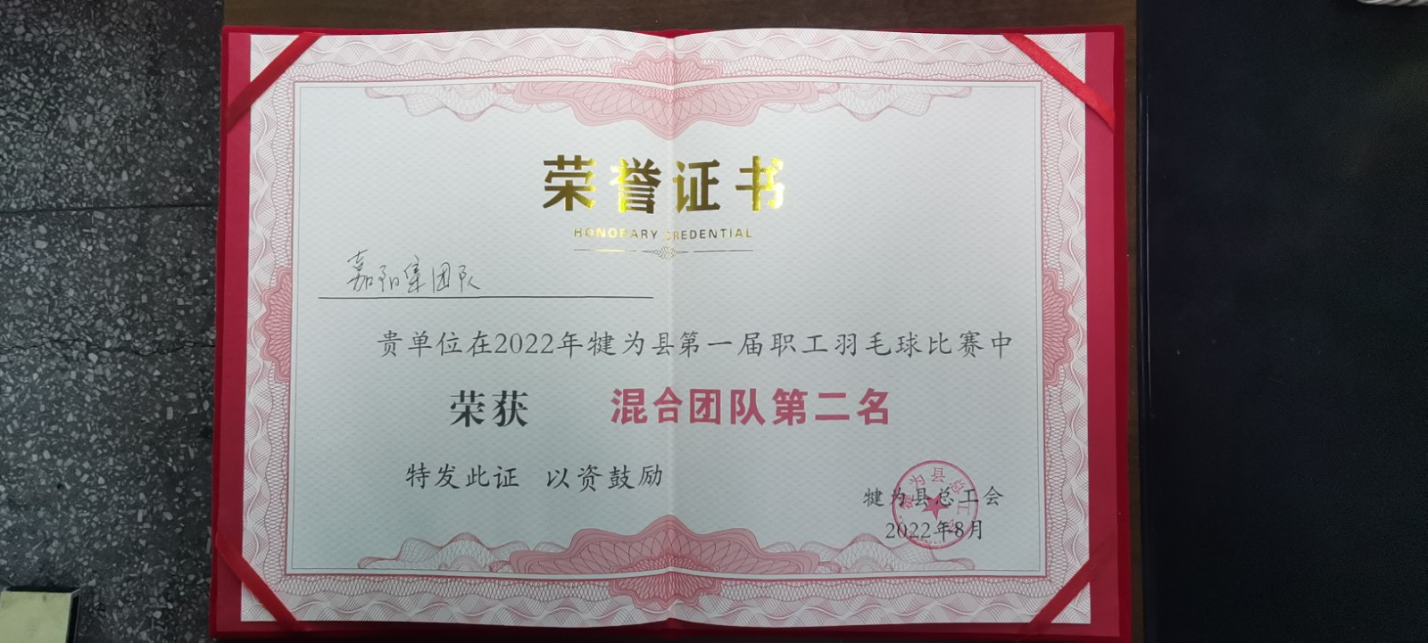 8月25日至27日,由犍为县总工会主办的犍为县第一届职工羽毛球比赛在犍为文体中心体育馆举行,经过三天的激烈角逐,最终胜游(中国)代表队获得了团体第二名的优异成绩。